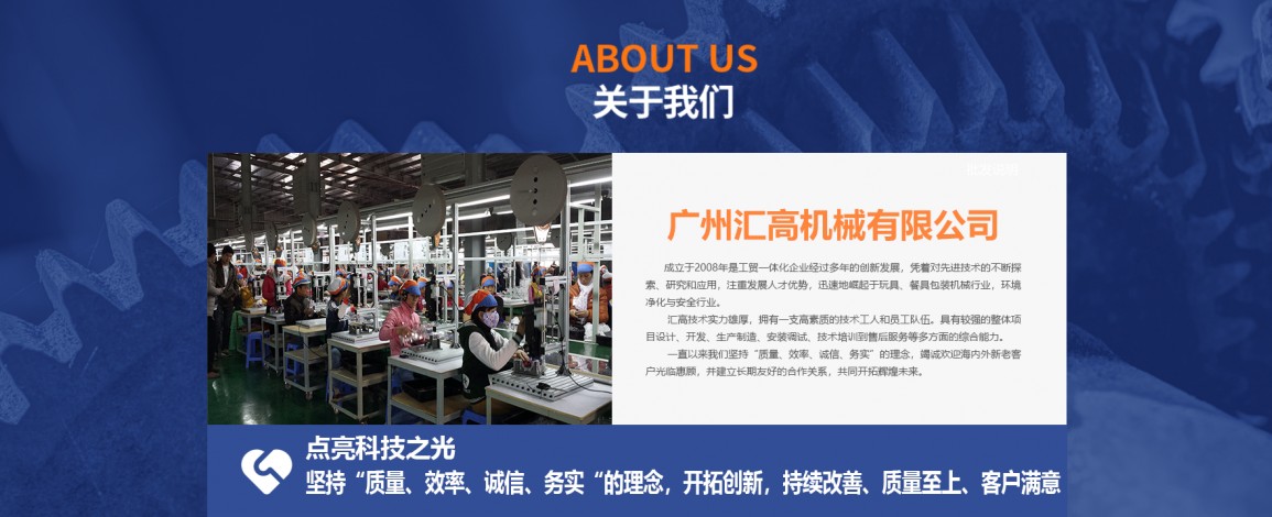 廣州匯高機(jī)械設(shè)備有限公司,成立于2008年是工貿(mào)一體化企業(yè)經(jīng)過多年的創(chuàng)新發(fā)展,憑著對先進(jìn)技術(shù)的不斷探索、研究和應(yīng)用,注重發(fā)展人才優(yōu)勢,迅速地崛起于玩具、餐具包裝機(jī)械行業(yè),環(huán)境凈化與安全行業(yè)。